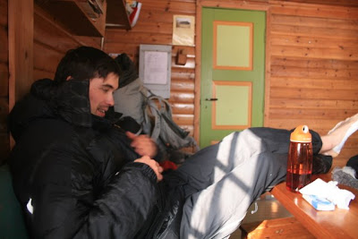 Arriving at the hut the first thing to do was to make a fire, melt snow and of course, dinner… Later in the evening a group of five finish skiers arrived at the hut. They started their journey in Kilpisjärvi, our aim. They seemed to be very experienced and told us that they hardly found the hut, with GPS of course. They told us that they had terrible storm up on the high plateau, which Daniel and I intended to cross next day.